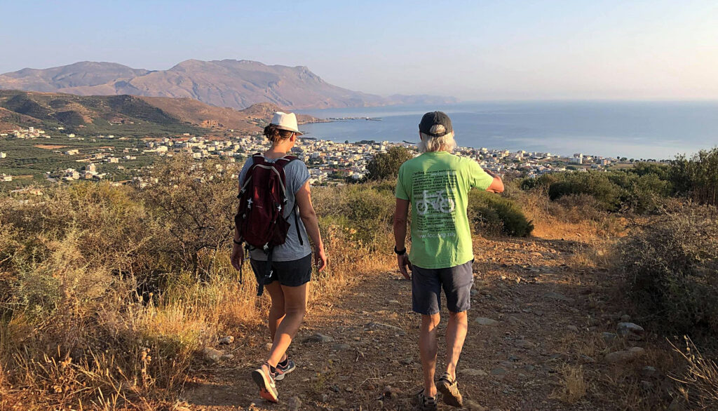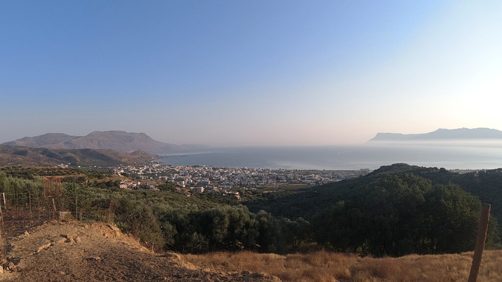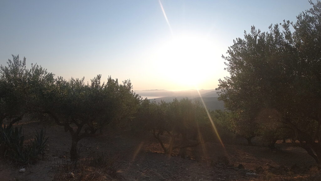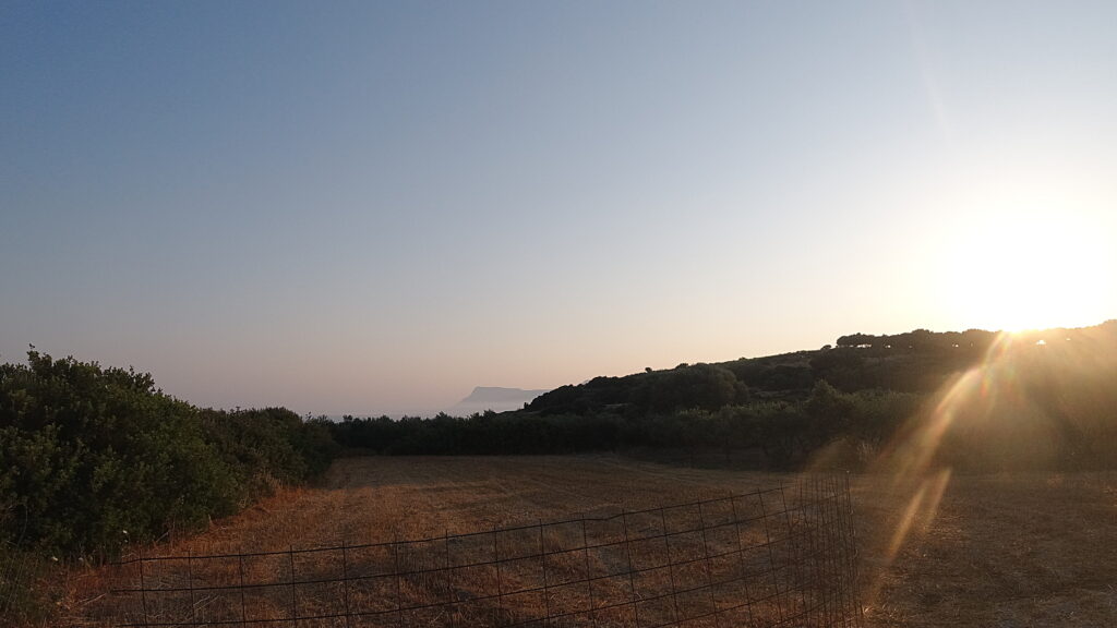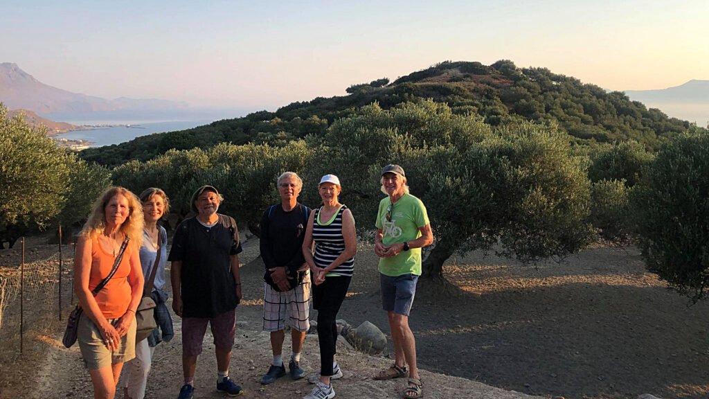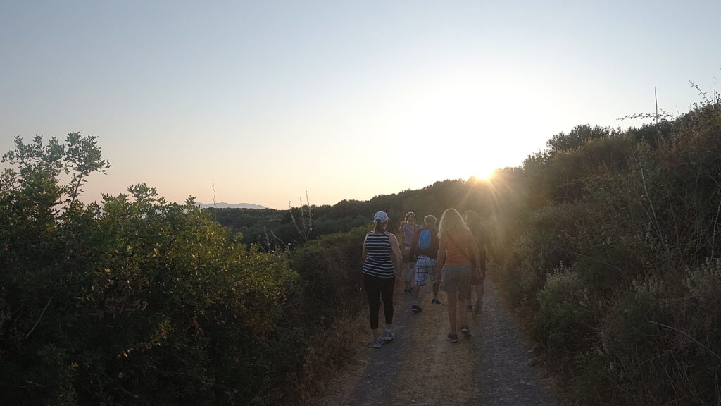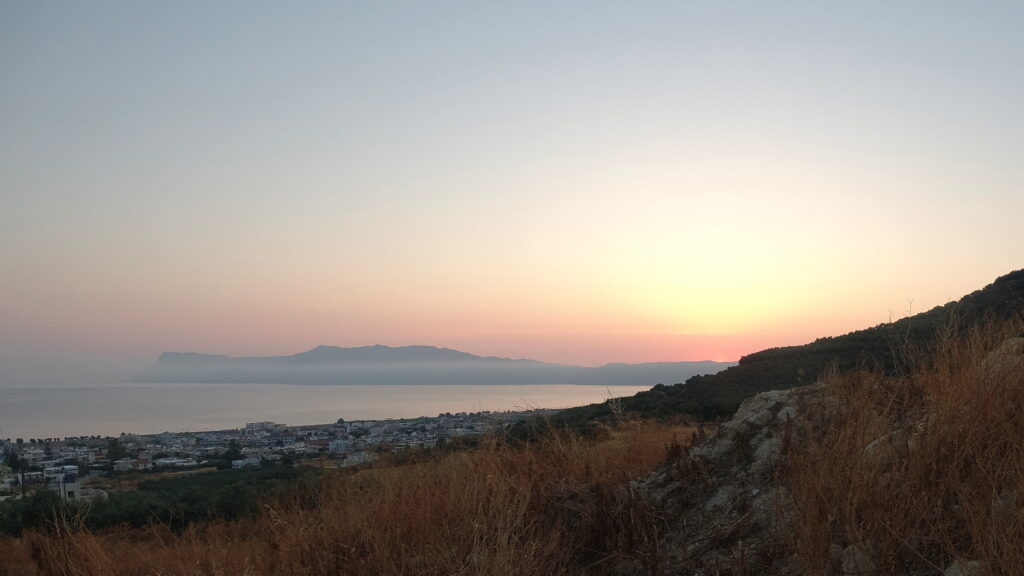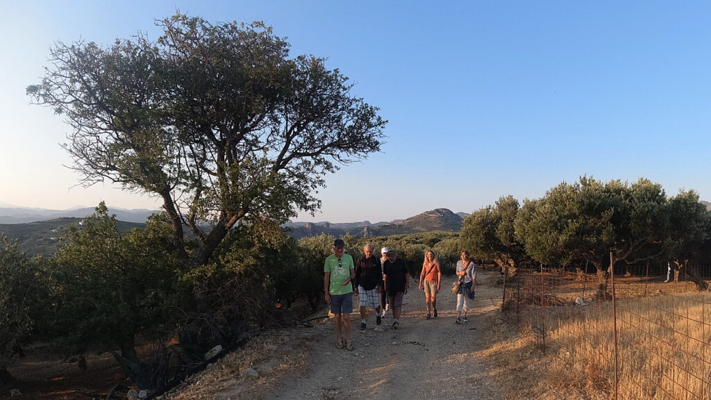 On Midsummers day, 2021, we braved the early morn and headed up into the hills behind Kissamos. As the dawn broke over the Ravdoucha peninsula, it bathed us and the whole valley in spectacular light. A beautiful, cool, hike to awaken the senses – and our appetites – before we breakfasted on local bakery goods on the beach.