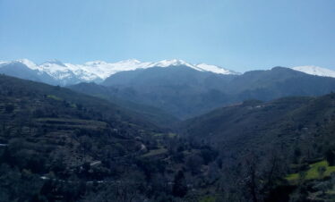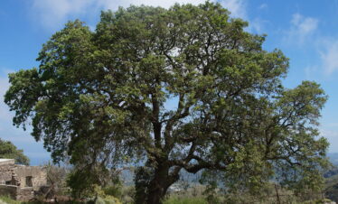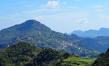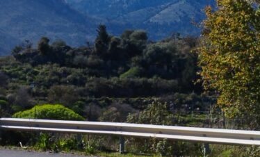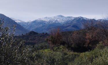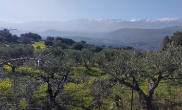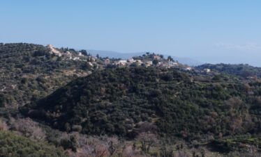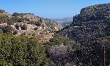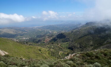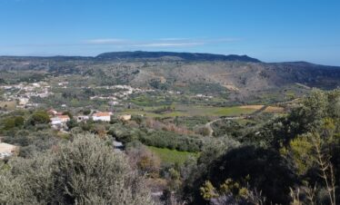 An E-bike ride inland South of Kissamos, in lush green valleys, with panoramic mountain views through chestnut forests.